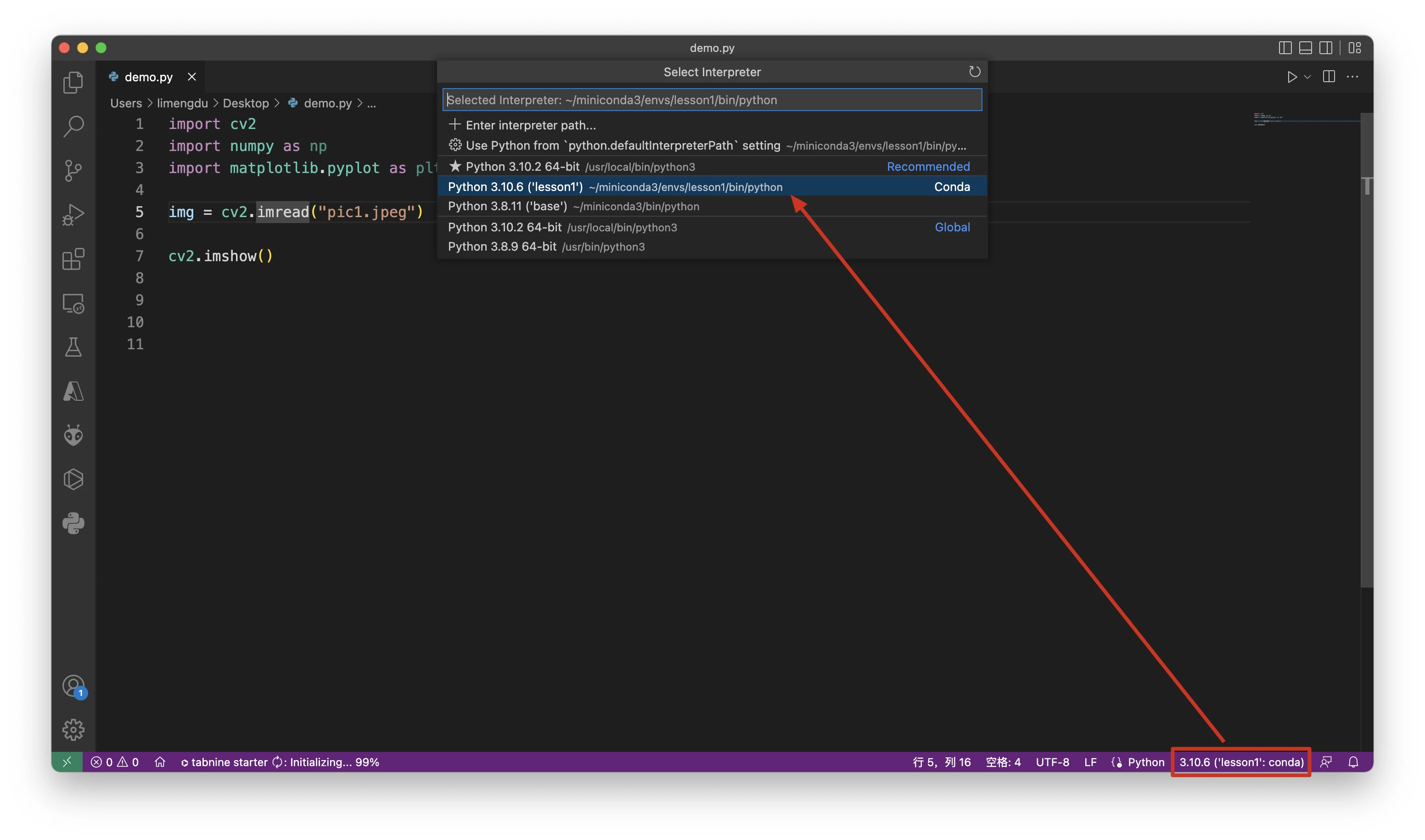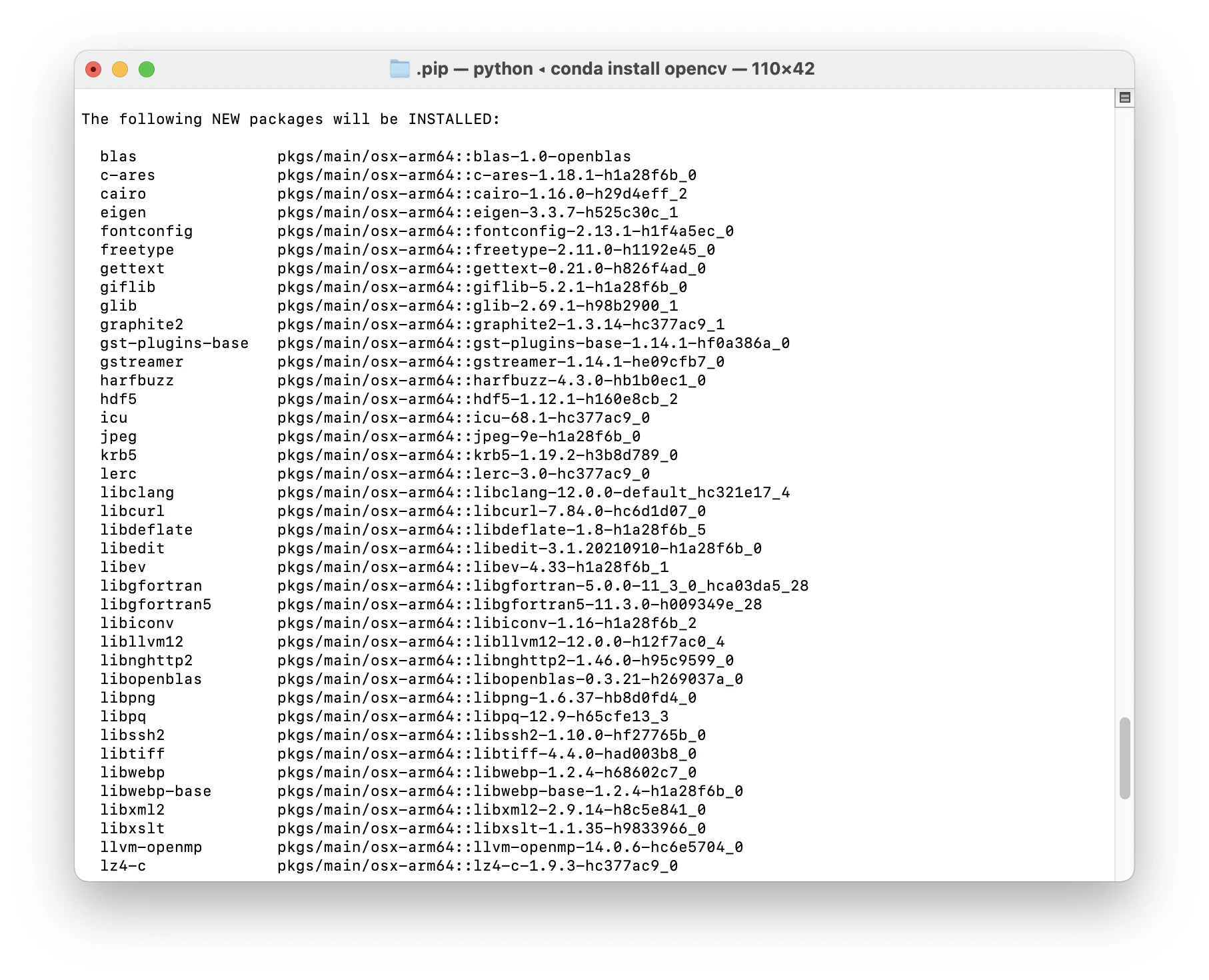 conda install opencv⚠️注意:此时如果你没有进入conda的环境,那么就是在base里面安装opencv!