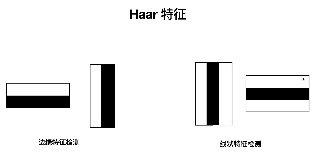 例如,一个简单的Haar特征可能是由两个并排的矩形组成的,一个矩形覆盖图像的某个区域,另一个矩形覆盖紧邻的相同大小的区域。如果第一个矩形内的像素平均强度明显不同于第二个矩形内的像素平均强度,那么这个特征的值就会很大,表明这一区域可能包含了图像的某种边缘或者颜色变化。