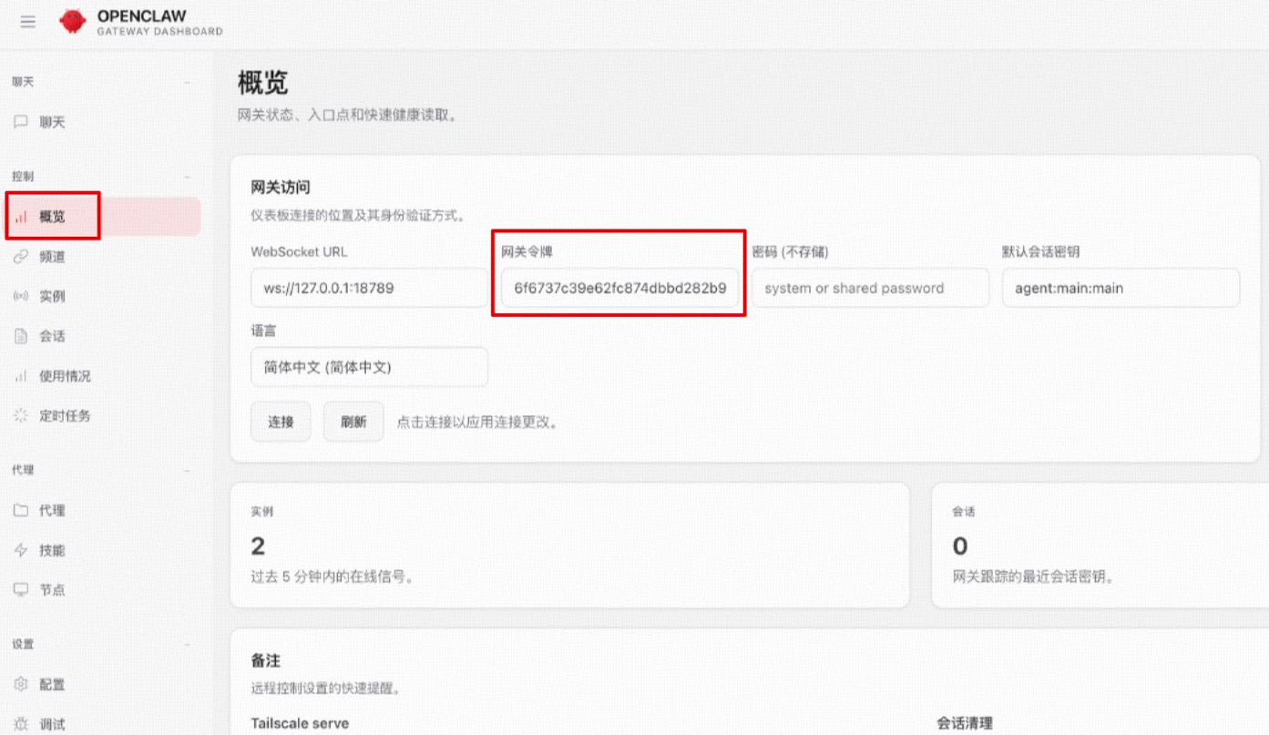 页面上应该会提示你缺少 Token,或者你可以点击页面上的概览。