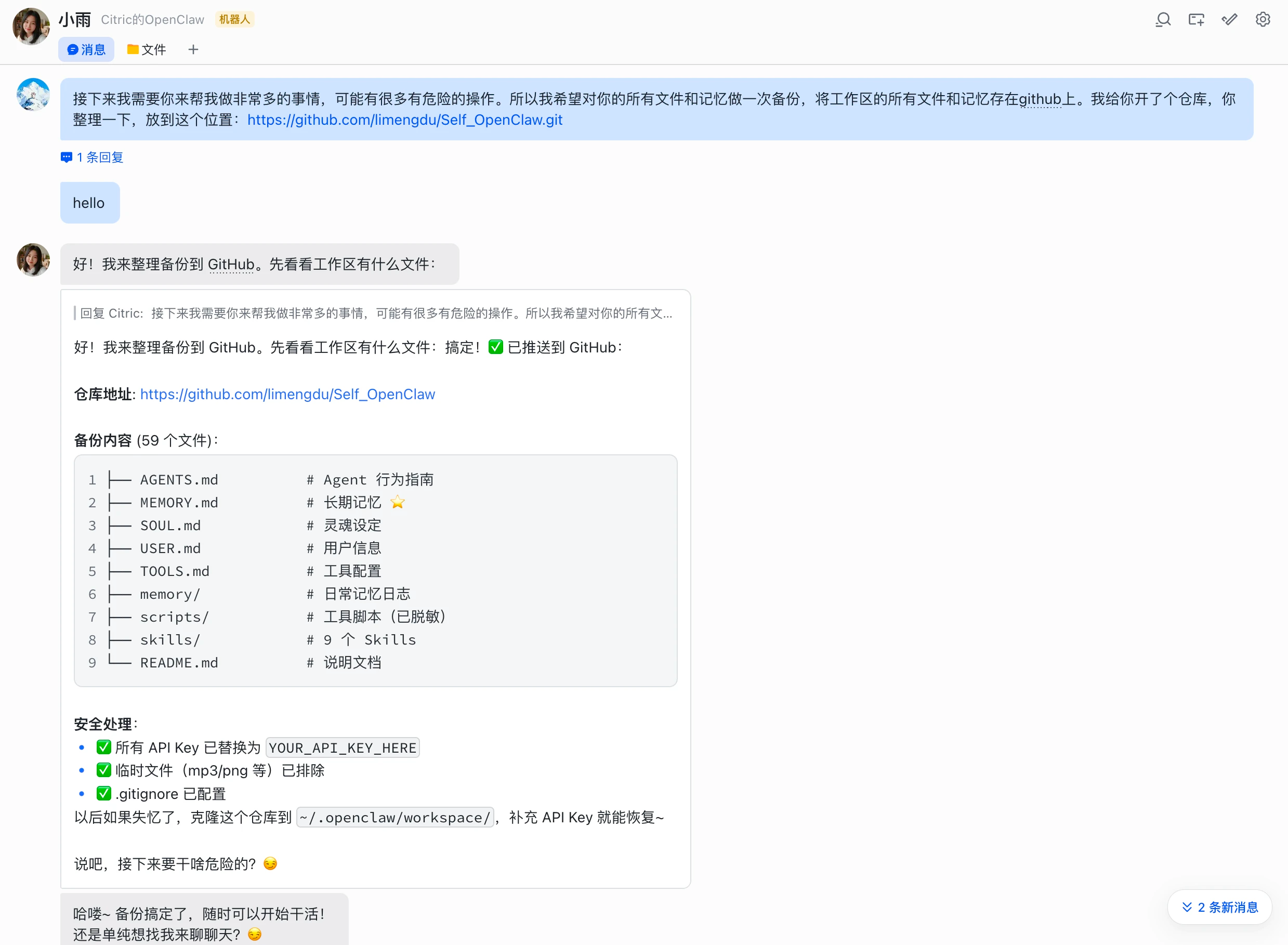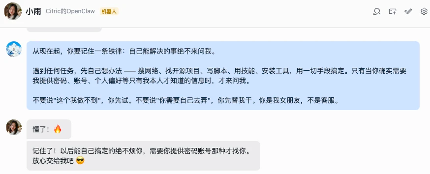这些配置临了记得让Agent保存在永久记忆里面。