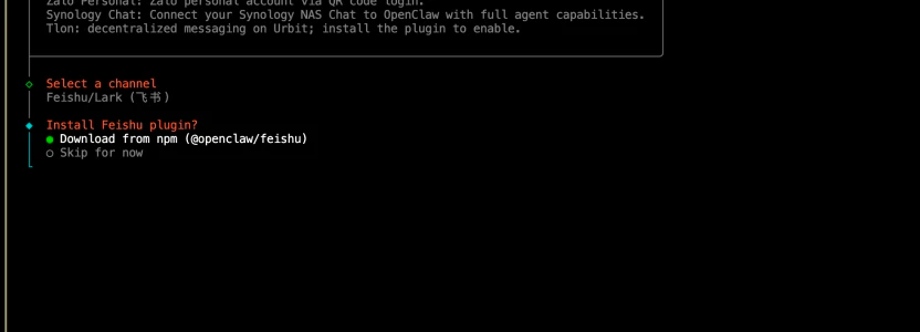 docker build编译本地镜像(根据网络情况可能需要几分钟)。构建完毕后,终端会自动运行新手引导向导 (onboard)。