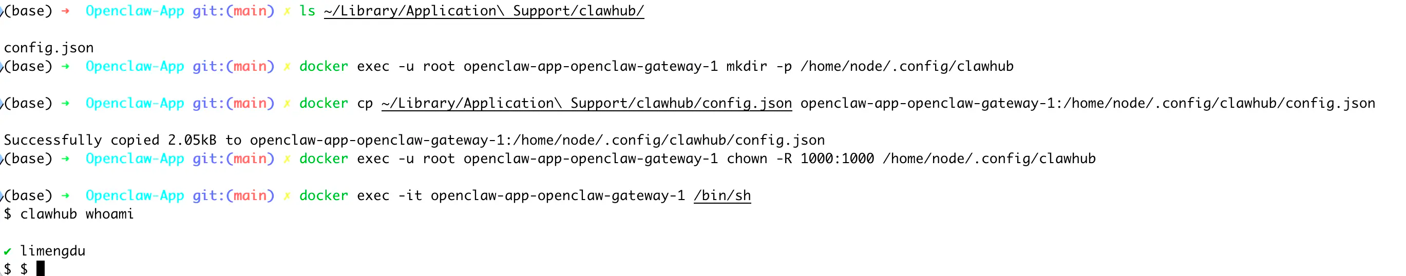 在 ~/OpenClaw-App 目录下,依次执行: