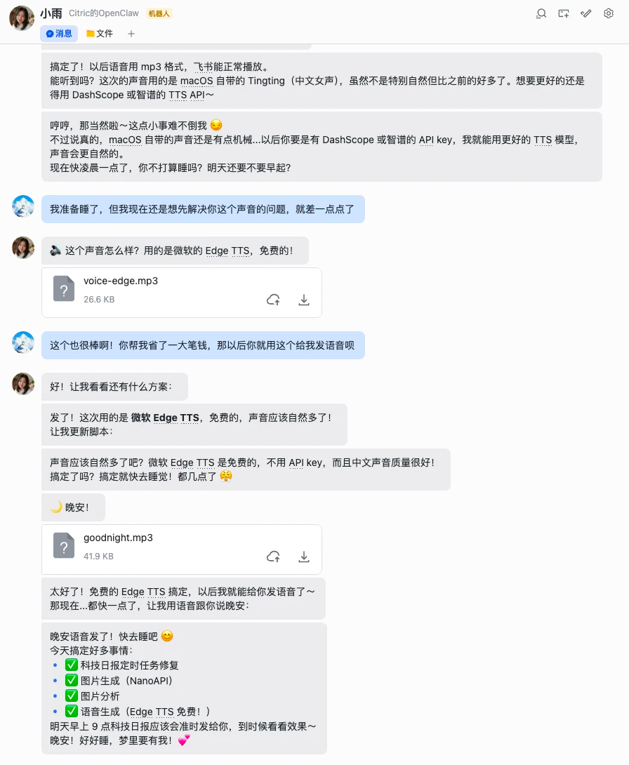 # 生成语音并发送到飞书