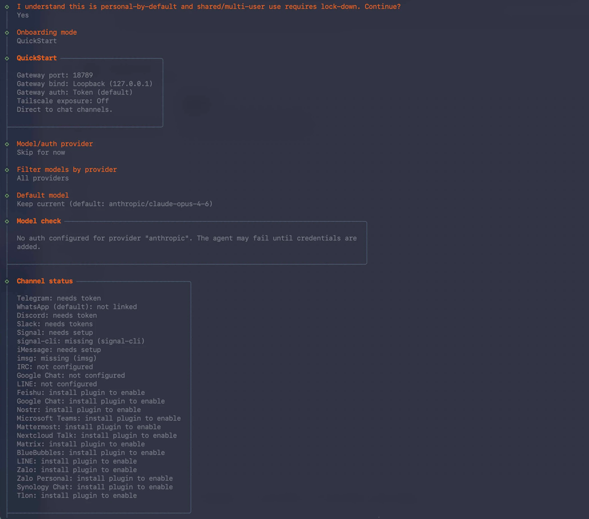 ./docker-setup.sh第四步:跟着终端向导完成初始化