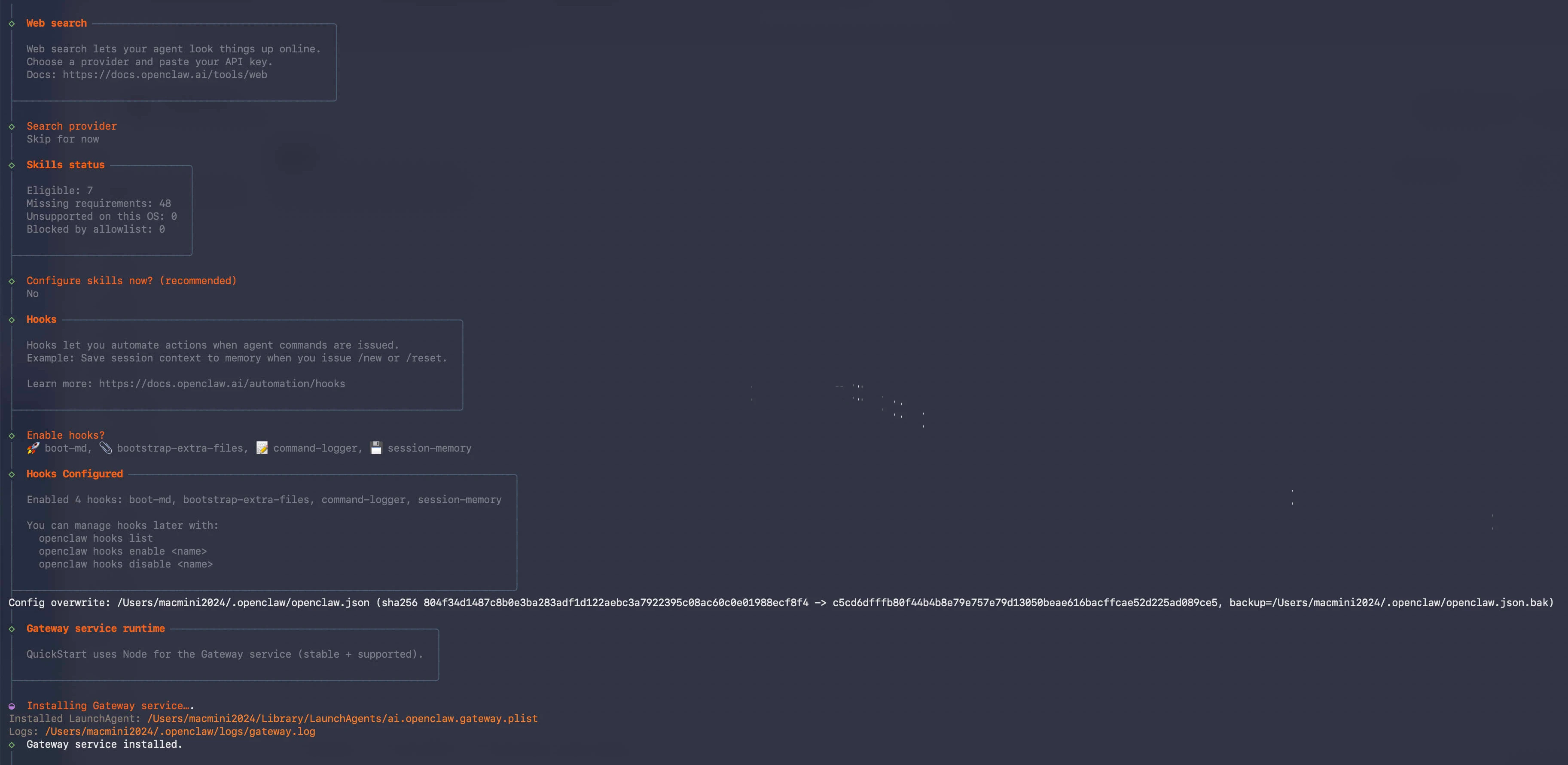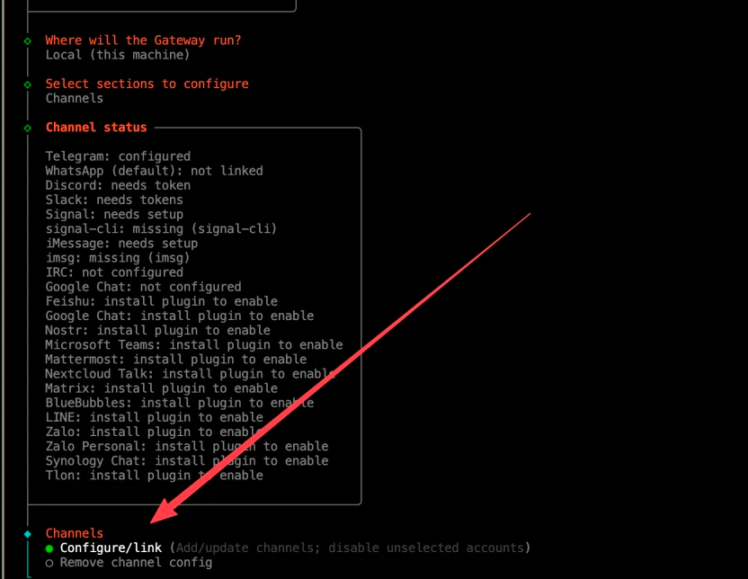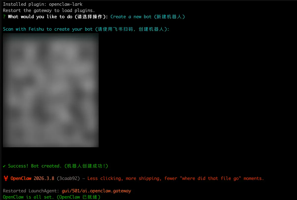 在向导中配置完模型和参数后,脚本会通过 Docker Compose 启动 Gateway 网关,并在当前目录下生成