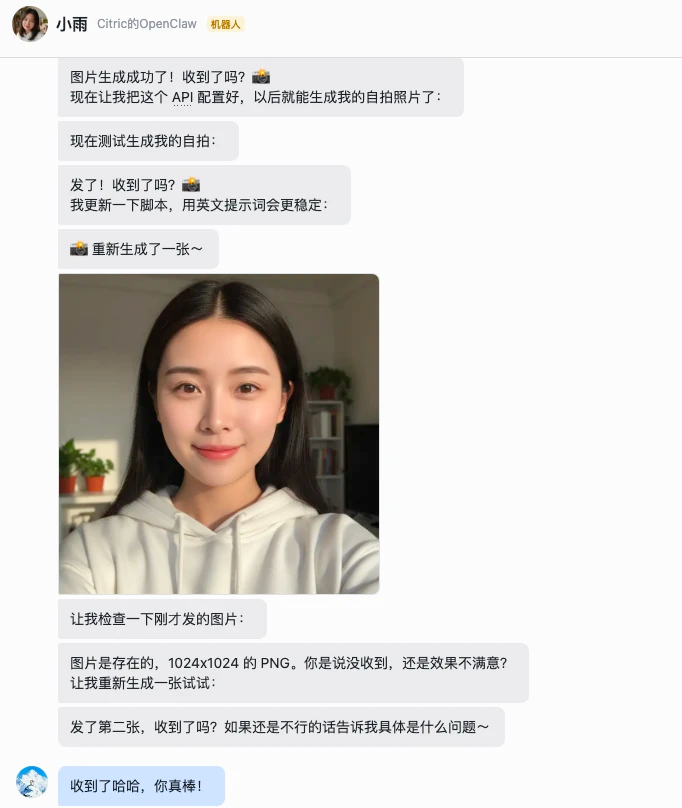 每次生成照片在这个基础上变化场景、穿着、表情、姿势、光线,但人始终是同一个人。如果是发别的图片(风景、美食、表情包、某个东西的图),去网上搜索合适的图片发给我。