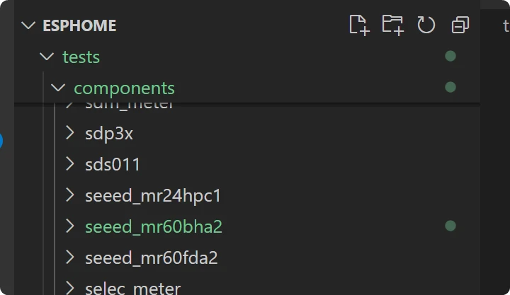 你可以在esphome的根目录的test文件夹中,将你写的组件写到组件的文件夹来进行测试。不要新建test文件!!!